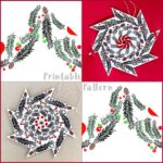 Un patrón imprimible apto para tinta con ramas festivas de hoja perenne, piñas y bayas que queda precioso en ambas caras del Anillo Estrella Mágica acabado (diseñado por Robert Neale).