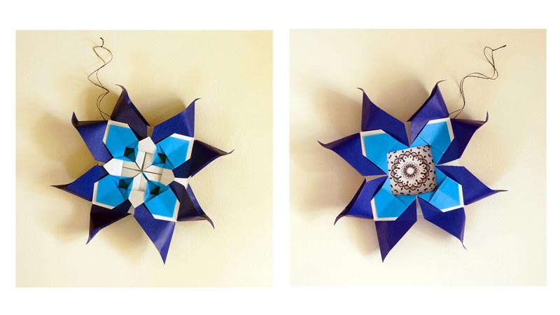 – Mod. 2 -DESAFÍO 2: Intenta averiguar cómo doblar el conector para hacer la “estrella acolchada”. A continuación, haz tus propios adornos para la zona central de la estrella.
